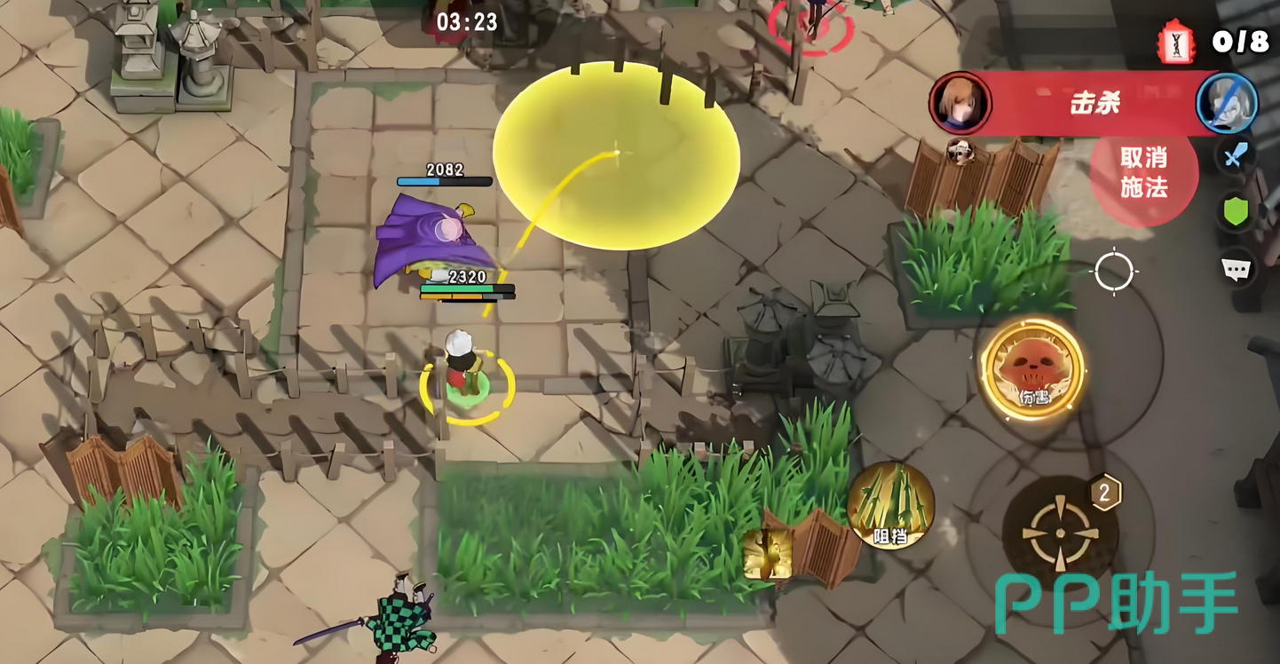 一技能名为“竹子陷阱”,可在目标位置生成一片竹林障碍物,成功命中敌人时触发击退效果。此技能不仅能有效阻止敌方近战角色突进,还能阻挡飞行类技能的通行路径。觉醒后,竹林覆盖范围显著扩大,进一步增强了地形控制能力,在团战前布置能极大影响敌方进攻节奏。