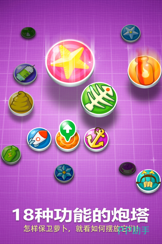 在游戏里面的小怪物并不吓人,反而是非常可爱灵动的,玩家的主要目标就是,保护更多的萝卜。在游戏中的主题和地图都是非常的丰富,每一个主题之下,大家可以进行不同的塔防建造。而且游戏还能够产生非常滑稽的音效,每一个小怪物都可以发出声音,在游戏里面还随机掉落一些宝贝,增加游戏的乐趣性。