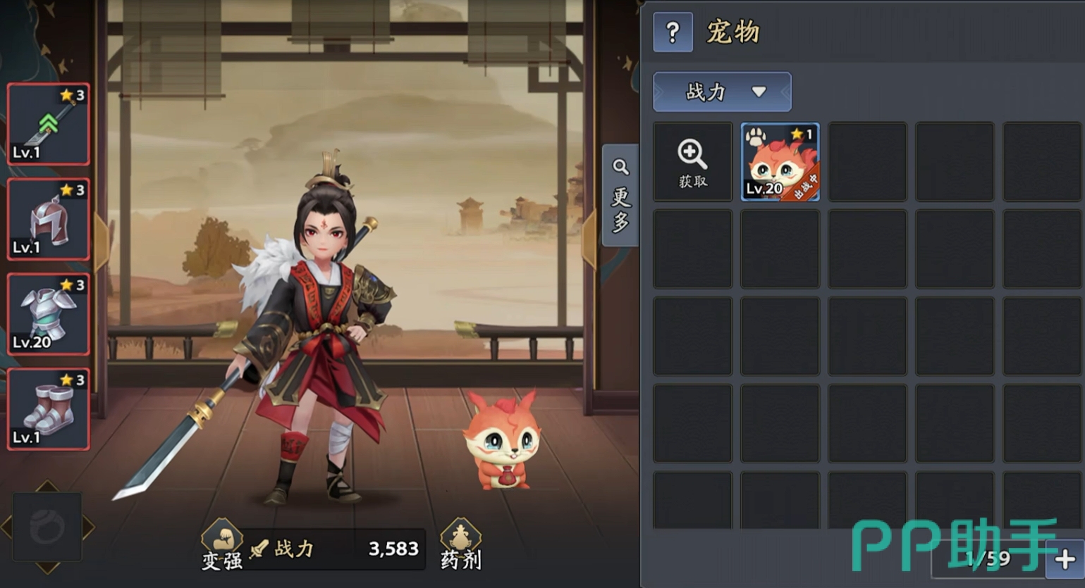 而要想让角色能在战斗大杀四方,各位需要通过养成来令角色变得更为强大。游戏里的主角、名将和宠物都能进行养成,也可为它们搭配上契合的装备,来进一步提高他们的基础数值。所需要的养成材料和装备均可从战斗玩法中获取,且每一项资源都能通过查看它的详情,来找到获取它的方法,并能一键完成挑战,令玩家能非常方便去进行刷取。此外,在各位重复获得武将时,还可通过升星来拉高他们的战力,进一步强化他们在战斗中的作用。