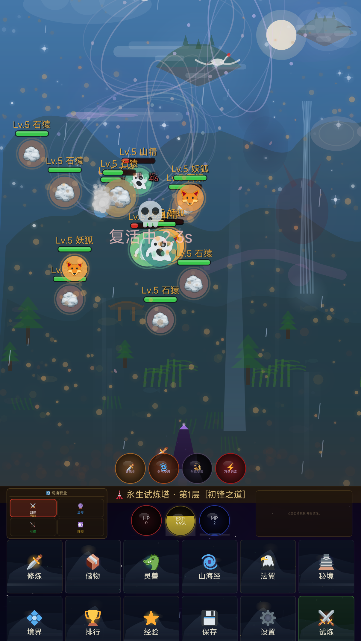 角色养成系统围绕“战力—境界—灵宠—装备”四轴展开:战斗过程自动解锁新灵宠与装备槽位,装备强化与属性洗练可定向提升战力;修炼体系严格遵循传统修仙设定,角色需经历筑基、金丹、元婴等阶段,每一境界细分为若干小层,虽基础升级迅速,但关键境界跃迁仍需合理规划资源投入,保障成长曲线富有策略纵深。
