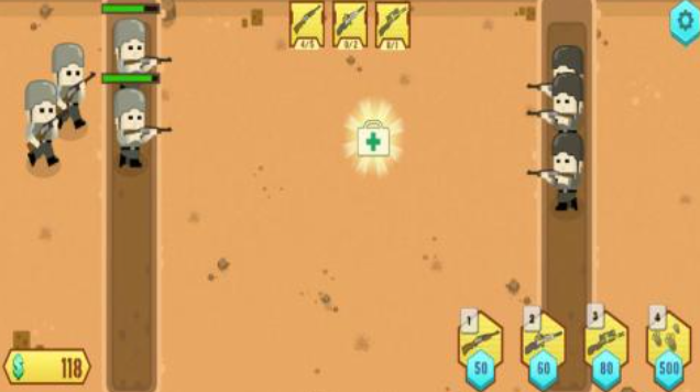 士兵突击是款很简单的放置挂机类型战争类手游,大家可以根据地形放置各种可爱的小士兵完成策略战斗,躲避子弹、建筑工事等新颖的玩法耐玩性更高,通过击杀敌人获取积分的体验感更加刺激,武器系统随意切换也可以不断升级提升军队的战斗力,欢迎各位军事类游戏爱好者进入士兵突击APP中互动。