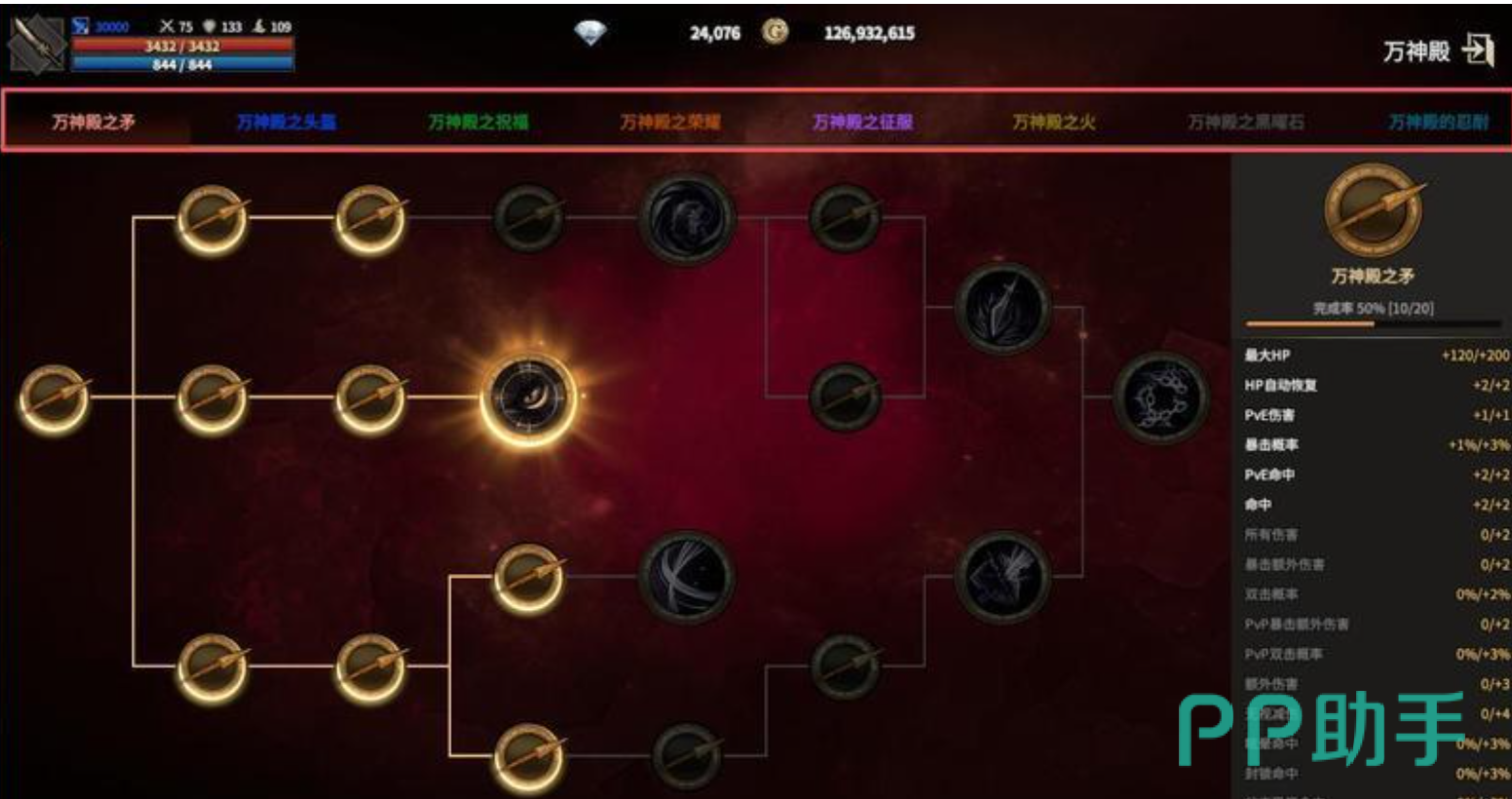 万神殿的价值体系由双重维度构成:属性强化与技能赋能。前者直接作用于英雄面板,涵盖生命值、攻击力、防御力三项基础属性,同时延伸至神圣伤害加成、暴击伤害提升、吸血效果增强、韧性成长等进阶维度,全面夯实生存能力与输出稳定性;后者则通过解锁技能槽位、激活专属技能来重构战斗逻辑——例如万神殿祝福技能可缩减核心技能冷却时间,并提升负重上限,从而加快挂机资源采集效率与副本通关频次,为高频刷图玩家提供实质性增益。
