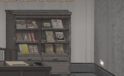 进入调查阶段后,应前往书架区域进行仔细搜索。在书架中央位置会发现一处明显的空缺,经过细致分析可判断此处曾存放一本红色封面的书籍,且该书已被取走。根据系统提示信息可知,这本书与某种化学品的制作存在直接关联,是解开谜题的重要突破口。