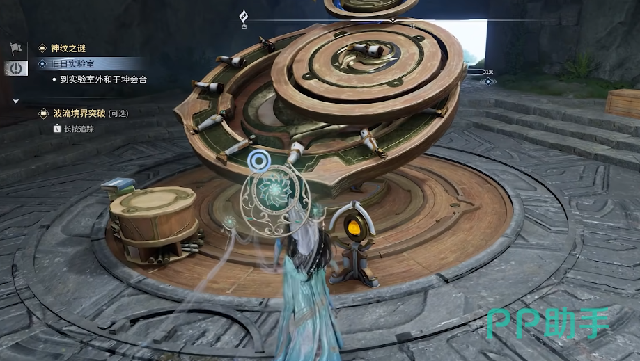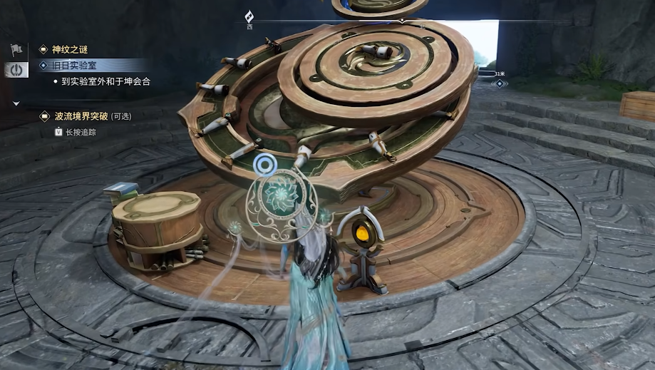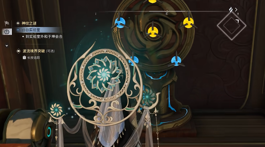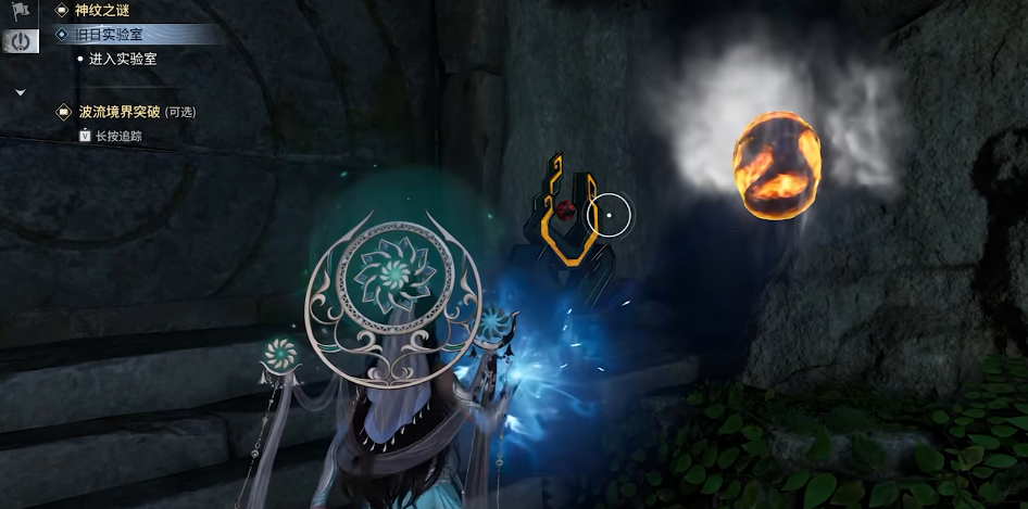 该任务并非独立开启,而是承接主线见闻【湖间之愿】的终章——完成与NPC于坤的对话后自动接取。进入旧日实验室前,玩家需在入口处触发机关:若持有燃烧果,可直接投掷使用;若暂未获取,则切换至元流之子形态,触碰机关亦可解除封锁。进入后,优先清理区域内游荡的敌对单位,随后跃上正前方平台,依次调查散落的三本典籍,并手动激活对应位置的三座炮台装置,以此解锁后续区域的关键路径。