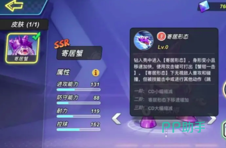 在角色选择方面,推荐新手优先尝试“寄居蟹”。作为SSR级别的角色,其获取途径相对友好,且操控难度不高。寄居蟹以高机动性见长,具备加速移动的能力,还可缩小体型进一步提升移速。在此状态下,普通攻击无法对其造成影响。当对手释放技能时,玩家可点击上方提示将其反制并捏碎敌人。需要注意的是,该角色跳跃高度有限,不建议随意使用二段跳,应把握时机,在敌人起跳后迅速抢断并完成投篮。