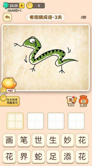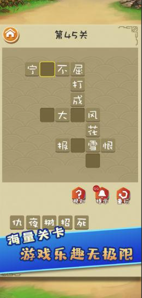 每个关卡都精心设计,题目中隐藏着1-2个缺失的字,你需要从众多选项中精准挑选,填补空缺,还原成语的完整面貌。每成功连接一个成语,你都将深入了解到其背后的历史故事和文化内涵,让学习变得生动有趣。游戏还融入了时间挑战和积分系统,增加了竞争的刺激感。