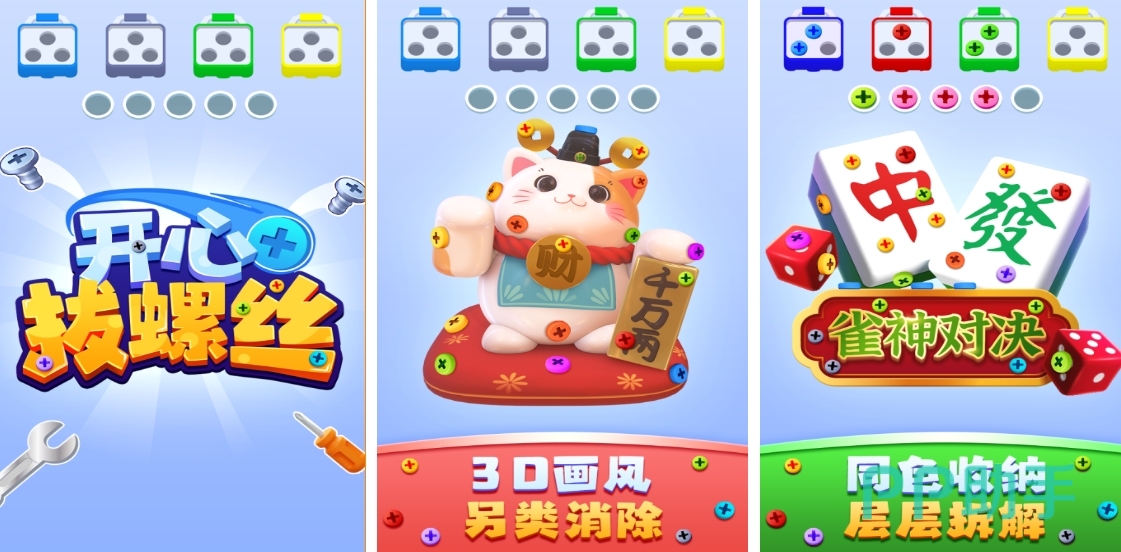开心拔螺丝以机械工厂为背景,充满了各式各样的机械装置,而玩家的任务就是在这些复杂的场景中,运用智慧与技巧将螺丝成功拔出。游戏画面风格清新可爱,机械元素被描绘得生动有趣,从色彩斑斓的螺丝到造型各异的机械部件,都为玩家营造出一个充满趣味与活力的游戏世界。