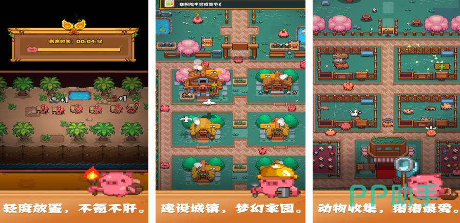 开拓猪之岛别出心裁地以一群可爱憨态的猪猪为主角,构建了一个充满奇幻色彩与无限可能的海岛世界,玩家踏入游戏,便置身于一座荒芜却蕴含巨大潜力的神秘海岛,这里有广袤的沙滩、茂密的森林、神秘的山谷等待玩家去探索开发,游戏采用清新可爱的卡通画风,将猪猪们活泼灵动的形象以及海岛的自然风光展现得淋漓尽致,搭配轻松愉悦的背景音乐,营造出轻松惬意又充满惊喜的游戏氛围。