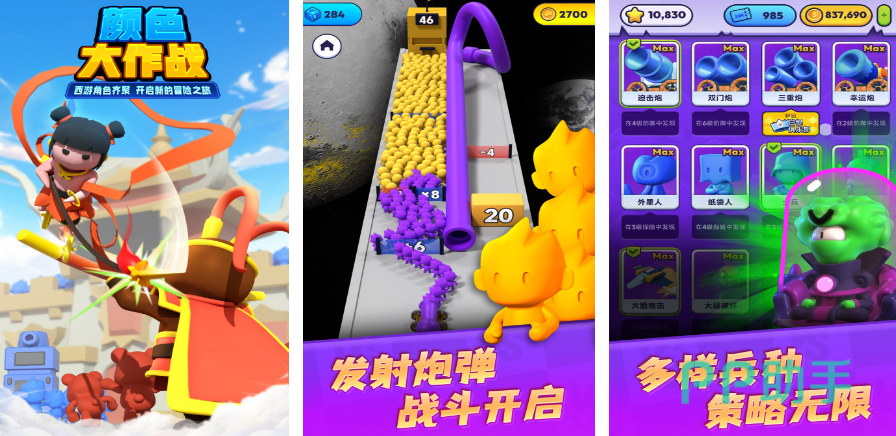 颜色大作战巧妙地将色彩元素与紧张刺激的对战玩法相融合,为玩家打造出一个充满活力与挑战的缤纷游戏世界,游戏以简洁而富有创意的美术风格构建场景,各类色彩鲜明的图形与角色跃然屏幕之上,在这个世界里,玩家将化身为色彩操控者,凭借对色彩的敏锐感知与策略运用,投身激烈的对战之中。