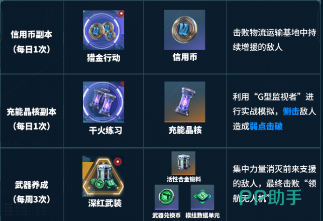首先必须完成的是每日限时一次的基础日常副本。这类副本虽次数有限,但资源集中且不可替代。信用币副本提供大量信用币,作为游戏内通用货币,广泛用于队员升级和基础物资采购。另一重要副本为充能晶核副本,其唯一产出即为充能晶核——该道具是提升角色天赋等级的关键材料。由于天赋直接影响技能强度,主力队员若想保持战力优势,此副本需每日必清。