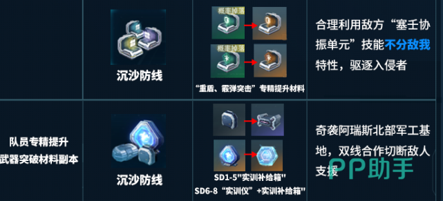 另有两类特殊副本值得特别关注。猎金行动副本同时产出充能晶核与信用币,相当于一次挑战即可覆盖两个日常副本的核心收益,适合补漏或提升效率。其玩法位于阿瑞斯北部军工基地,支持多人组队协作,战斗体验更具策略性。实训材料副本则分为两个阶段,分别掉落实训补给箱与实训仪。后者为后期养成阶段不可或缺的关键道具,建议优先刷取并确保每日次数用尽。