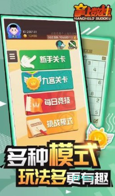 这是一款能锻炼数独脑力的游戏,它有着极为丰富的关卡设定,玩法趣味十足。而且游戏没有广告干扰,内存占用极小,绝对是你日常休闲时的绝佳选择!这女是一款融合了五种不同玩法的免费数独游戏。它包含普通9x9 数独和迷你6x6 数独还有wordoku和killer sudoku以及每日数独挑战。其中,killer sudoku 是数独和 kakuro 的巧妙融合。游戏拥有数千个谜题和挑战目标,是锻炼大脑的理想应用。