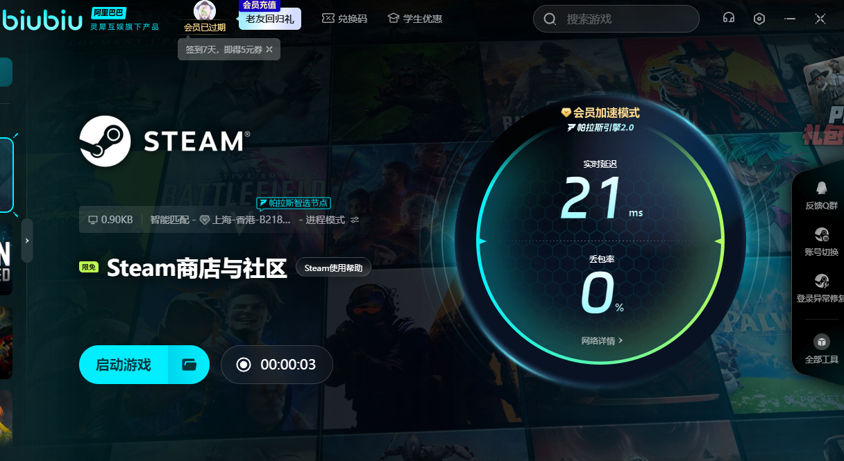 在警区正式上线之后,小伙伴们就能在steam等多个平台中游玩到这部相当不错的作品了。值得一提的是biubiu可以给steam进行免费的加速,这样无论是打开容易抽风的商店页面还是社交板块,都会非常顺畅。如果玩家们是在校大学生,那么只要通过简单的认证就能立刻享受到非常优惠的价格,让自己成为正式会员。对于已经工作的朋友们,也有力度很大的购买优惠。