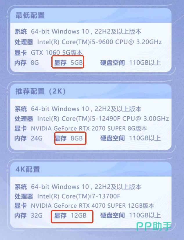 根据官方公布的PC端最低配置要求,显卡需达到NVIDIA GTX 1060(5GB显存),但该型号无RT Core,不支持光线追踪运算,故无法启用相关特效。而推荐配置中提到的NVIDIA RTX 2070 Super(8GB显存),已完整集成第二代RT Core与Tensor Core,可稳定运行光追增强模式,并在2K分辨率下维持流畅帧率表现。