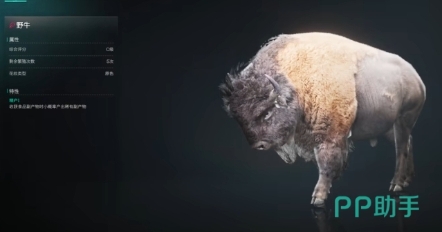 野牛在游戏中有多种重要作用,野牛分为河谷属性和群山属性,不同属性的野牛牛皮有着不同的功效,河谷属性的野牛牛皮制作的装备,能让玩家在受到暴击伤害时恢复15%的生命值,而群山属性的野牛牛皮制成的装备,则可提供15%的暴击伤害减伤效果,此外野牛还可以进行繁殖养殖,由于野牛分公母,玩家将其捕捉后可以带回基地饲养,通过繁殖持续获取牛皮,同时野牛还能为玩家提供食物和材料,它可以产出大块肉和皮革,这些都是游戏中非常宝贵的资源。