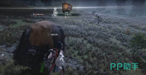 找到野牛后便进入捕捉环节,先将镇静剂投掷针装备到快捷栏,然后使用常规武器射击野牛,但要注意不能将其杀死,当野牛的血量降低到很低的程度,即剩下一击就会死亡时,使用镇静剂投掷针,如果针成功击中野牛,就靠近它并按下捕捉按钮,这样就能把野牛放入库存,在捕捉过程中建议选择弩箭,因为其伤害足够且不容易惊动牛群。