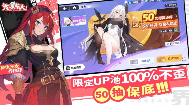游戏剧情充满无厘头的爆笑桥段,讲述了失去力量的传说之龙法夫纳与傲娇公主齐格菲的复国寻戒之旅,角色互动丰富设有好感度系统,玩家可以通过触摸、牵手等操作提升好感,解锁誓约等恋爱体验,新手开局抽卡首日完成主线任务,可以获得五十抽的奖励,建议集中抽取“火系UP池”,限定角色如“炎狱龙姬・伊芙利特”首抽价值极高,六星被动【灼烧连锁】可提升全队火伤,极大增强团队输出,若未抽到可优先培养系统赠送的齐格菲和芬里尔,这一组合在前期推图效率名列前茅。