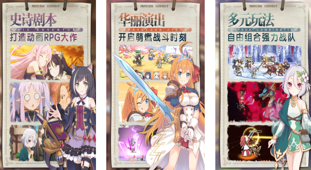 整个游戏的角色立绘精美,每个公主所拥有的魅力和背景故事都相对独特。游戏采用的是角色扮演跟策略有效的结合。玩家在体验游戏时需要组建强大的公主团队,然后利用智慧跟策略来有效的制敌。另外在游戏当中设有公会系统跟好友系统,玩家在体验游戏时需要完成任务才能够享受合作所带来的乐趣,毕竟这时候玩家已经将公主组队去战斗。