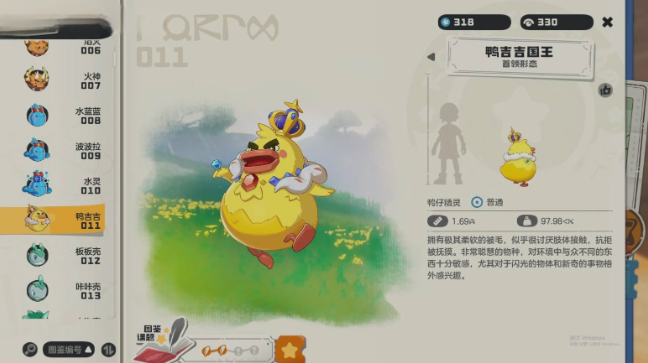 鸭吉吉的基础形态共分为三种,每一种都展现出不同的成长阶段与性格特征。初始形态体型娇小,头部略显扁平,整体显得灵动活泼,充满朝气。当其进化至蓬松形态后,身体变得圆润饱满,外观更加软萌讨喜,虽然行动上稍显迟缓,但正因如此更增添了它的亲和力。而当达到超进化状态时,鸭吉吉将觉醒为“首领形态”,此时它不仅拥有威严霸气的外观设计,战斗力也跃升至顶尖水平,成为队伍中不可或缺的核心战力。