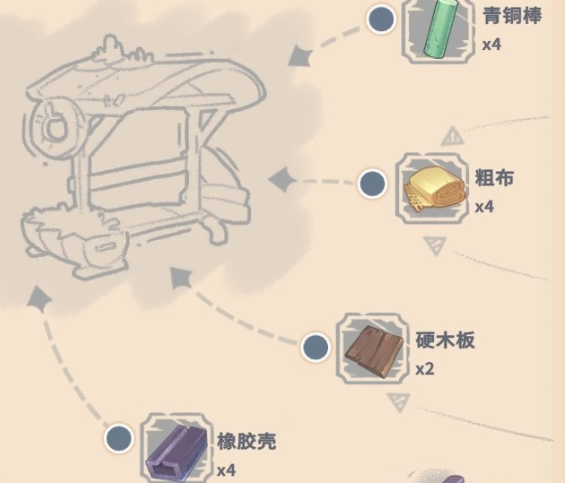成功制作裁缝台后,即可解锁“粗布”配方。粗布由植物纤维合成,而植物纤维可通过采集蒲公英、芦苇等野外常见植被稳定获取,属于低门槛资源。随后进入驼牛站本体建造阶段,所需材料包括:青铜棒×4、粗布×4、硬木板×2、遗迹橡胶壳×4。其中,遗迹橡胶壳为整套流程中最稀缺材料,当前版本中确认的高产出点位为“回收公司”及“尤弗拉公司”周边遗迹群,建议集中清理该区域精英级敌人以提高掉落率。