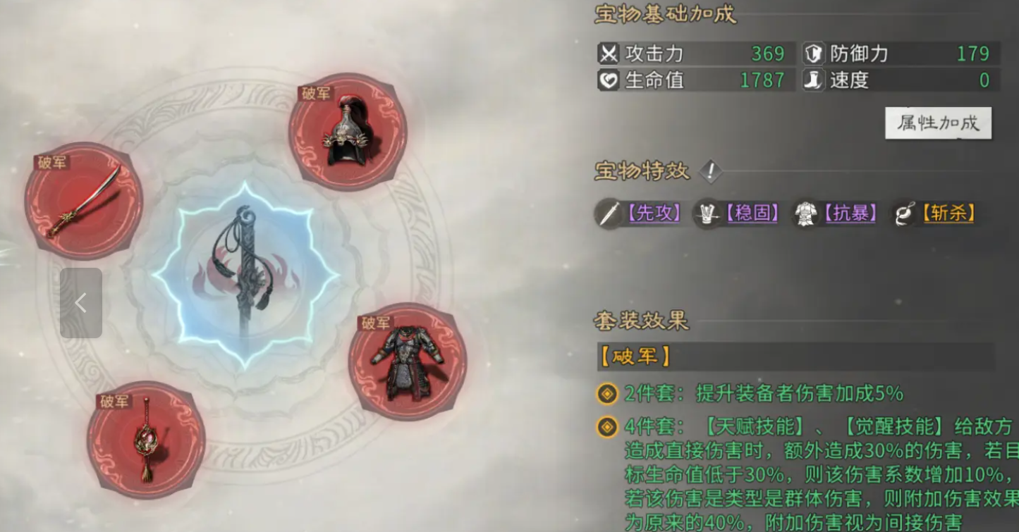 游戏不同阶段对装备策略提出差异化要求:前期资源有限,以“能造即用”为原则,快速填充战力缺口;中后期图纸、材料储备充足后,则需转向精准适配逻辑。此时应依据武将定位选择套装方案——例如吕布、张辽、孙尚香等高武力单体爆发型武将,推荐优先装配破军套;而兼具持续输出与技能压制能力的吕布、关羽,则更契合战意套的增益机制。当同系列套装穿戴达2件或4件时,将激活专属套系天赋,进一步放大属性收益。