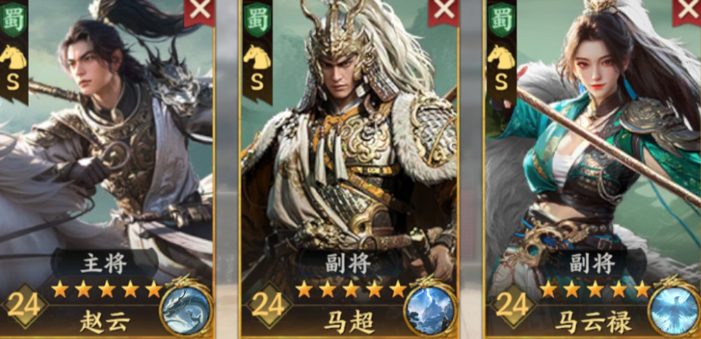 偏好高速机动与单体爆发的玩家可尝试骑兵流派。基础配置为“连击骑”:赵云、马超、马云禄。三人技能均围绕单体打击展开,且普通攻击有一定概率触发“追击”,实现二次输出(需马云禄携带对应兵书)。赵云被动提升骑兵移速,马超可根据移速增益普攻伤害,马云禄则能提高全队普攻系数,多重加成下使该阵容在野地扫荡与小规模冲突中表现出色。