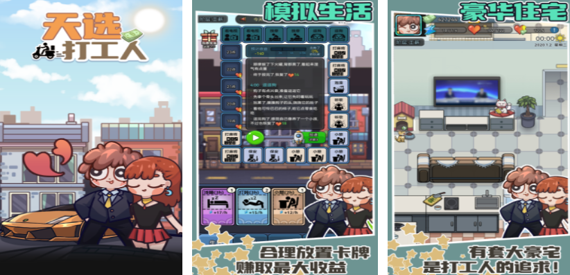 离开学校之后就需要踏入职场,并不是每一个人都能成为优秀的打工人,可以通过天选打工人这个游戏开启一段真实的打工模拟,在这里会有各种不同的职业可以让玩家选择,除了要选择一个自己喜欢的主职业之外,还需要合理的安排时间,这样才能通过副业让自己有更多的收益,在里面需要合理的放置卡牌,这样才能让收益最大化。