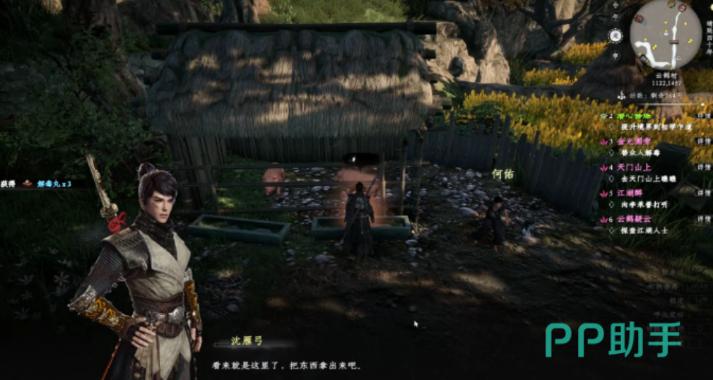 这一突发状况迅速将玩家从调查模式转入救援情境。江湖之中,人情冷暖往往就在一念之间。救治三人并不复杂,只需在周围稍作探索,便能在附近的猪圈中找到一份解毒药。这个设计颇具趣味性——谁能想到救命之物竟藏于牲畜圈舍之中?将药物交给陀学智后,三人逐渐恢复意识,原本紧张的气氛也随之缓和。原本以怀疑开端的相遇,最终演变为一次善意的援手,这种情节反转让任务更富有人情味与真实感。