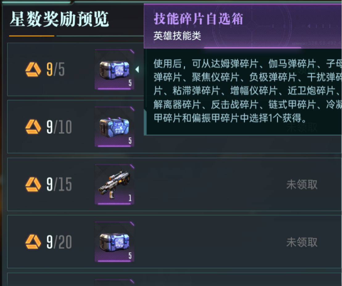 同时击退全部的敌人,将这些任务全部完成之后,就可以来产出信用点。同时还可以来抽卡或者提升自己的装备,获得英雄碎片以及技能碎片,无论是普通的还是扫荡,都会有相应的奖励,并且达到一定的星数,也会获得一次性的技能碎片,还有一些英雄碎片和装备等等,这种玩法和天梯挑战类型的是差不多的,需要达到一定的任务目标,攻略的难点也比较的高,会从最基础的来逐渐的上升十分考验大家在实战中的操作。