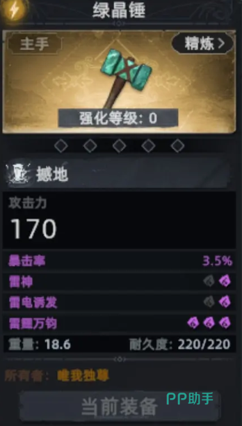 绿晶锤以雷电元素为核心机制,能够释放强力震荡打击,在近身战斗中具有极强的爆发能力。不过该武器对操作有一定要求,且词条属性的养成会直接影响实战效果,适合有一定经验的玩家深入培养。