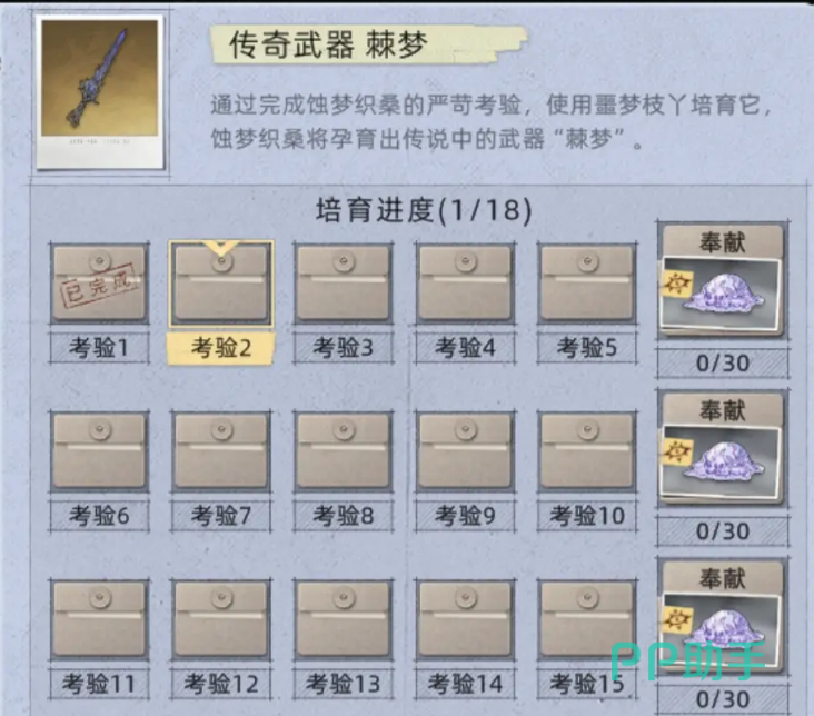 棘梦是一把稀有的传奇级武器,拥有极高的基础攻击力,属于后期强力装备之一。获取途径较为苛刻,必须完成共计18项独立任务方可获得,适合中后期追求极限输出的玩家收集。