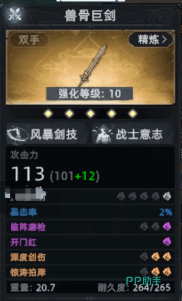这款近战武器具备基础暴击属性,攻击时可召唤风暴对周围敌人造成范围伤害,输出表现可观。但由于其重量较高,移动和挥砍速度略受影响,建议搭配高耐久护甲在前线作战,发挥前排压制作用。