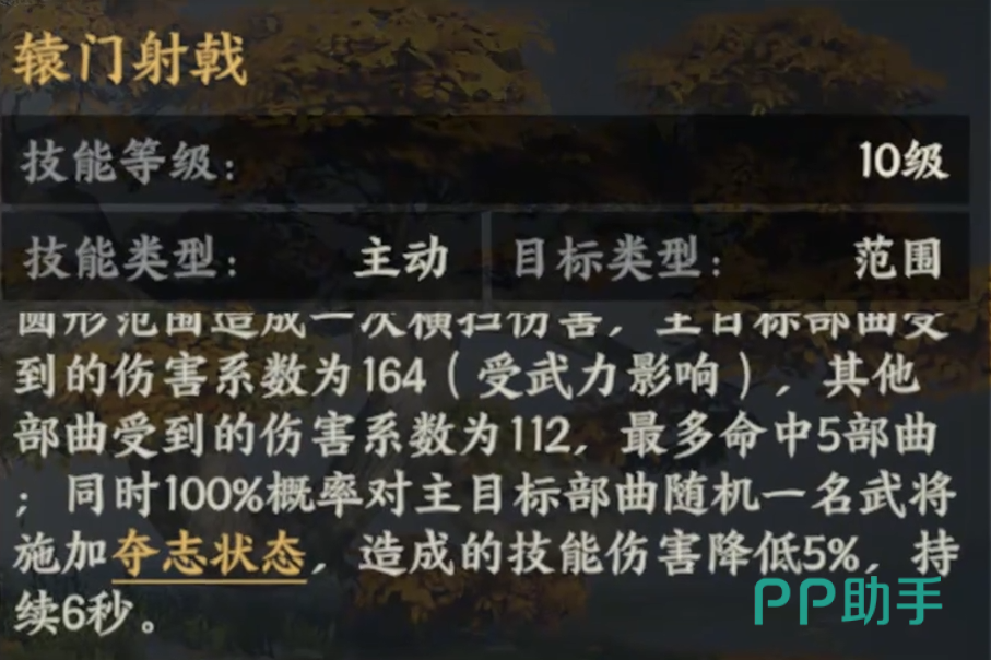 主动技能“方天画戟”是其主要清场手段,消耗2点策略值,对前方直线三格内的所有敌军造成155%攻击力的物理伤害,并附带50%概率施加“撕裂”状态(持续2回合,每回合损失施法者攻击力30%的生命值)。该技能冷却时间为3回合,适合用于清理密集小怪或压制多个目标。使用时需注意三点:尽量覆盖更多敌人以提升性价比;优先作用于已行动单位,防止被治疗驱散负面状态;配合被动可能触发的连击,有机会直接斩杀低血量脆皮。面对高回复阵容时,“撕裂”的持续掉血效果尤为致命。大招“无双乱舞”是其最具威慑力的单体技能,消耗3点策略值,对单一目标造成高达280%攻击力的物理伤害,并附加“震慑”效果(令目标下回合无法行动)。该技能冷却为5回合,但可通过特定装备或天赋缩短至4回合。作为全游戏单次伤害倍率顶尖的技能之一,通常用于精准清除敌方核心单位。