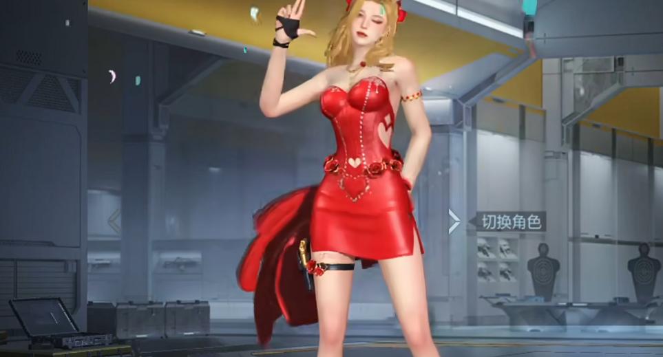 切换至潜伏者阵营后,角色呈现长发飘逸的形象,身穿红色连衣裙搭配高跟鞋,展现出优雅气质。虽然造型颇具时尚感,但在战术层面依然具备实战价值。基础属性方面拥有常规双防能力,同时携带副武器时支持加速换弹功能,有助于在近距离交火中抢占操作节奏。