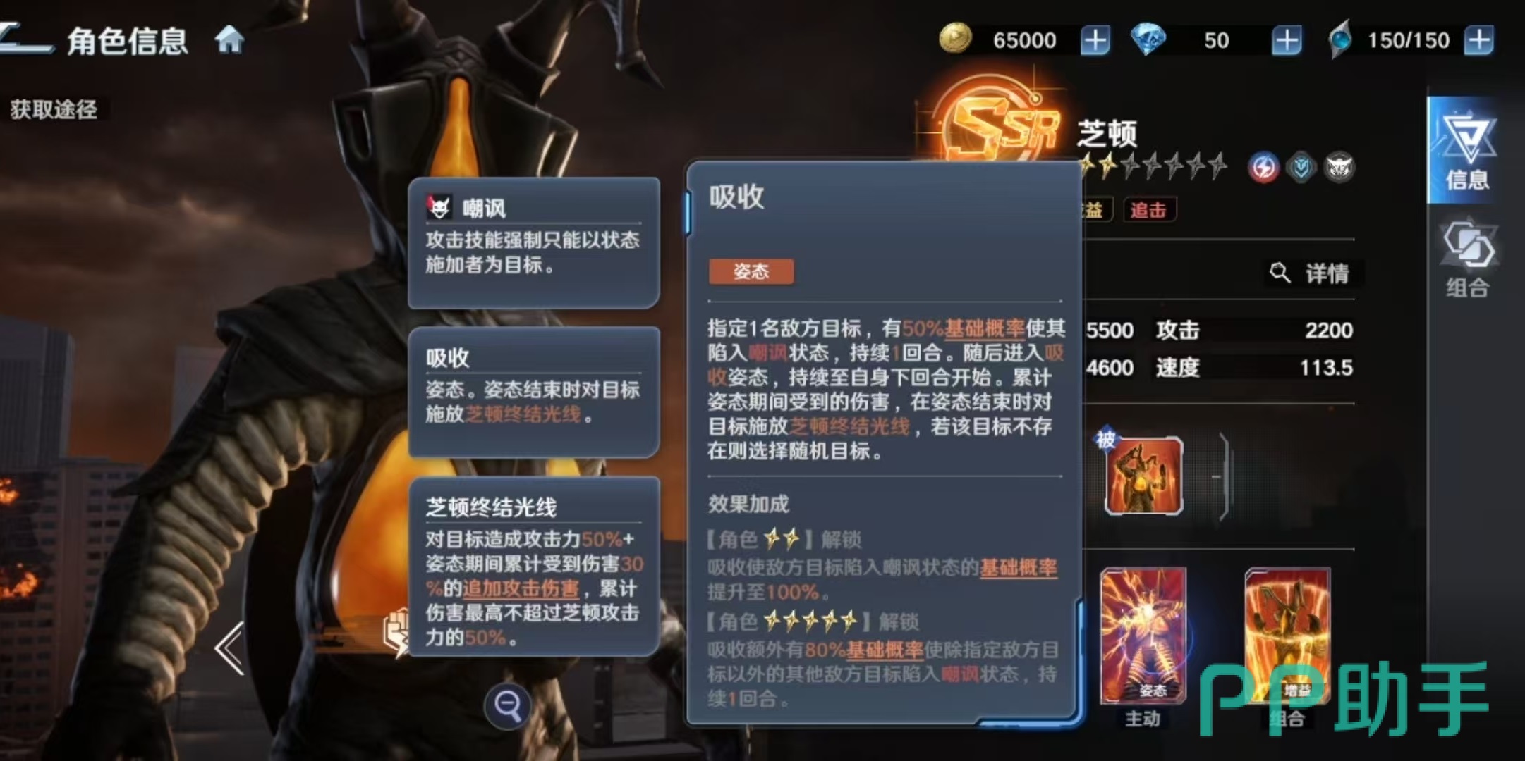 大招【强制牵引】为芝顿的核心控制技:选定一名敌方单位施加强制嘲讽,同时自身进入“能量吸收”状态。在此期间,所有受到的伤害将被暂存,并于状态结束时以终结光线形式全额反弹至被嘲讽目标。该机制既可有效保护我方核心输出,又能将敌方集火转化为高额反制伤害,实现攻防一体的战略价值。在组队配置方面,推荐搭配芝顿、贝利亚、格丽乔、捷德、雷德王构成均衡阵容,兼顾生存、控制与多段输出,适用于开荒推图及日常副本等多种场景。