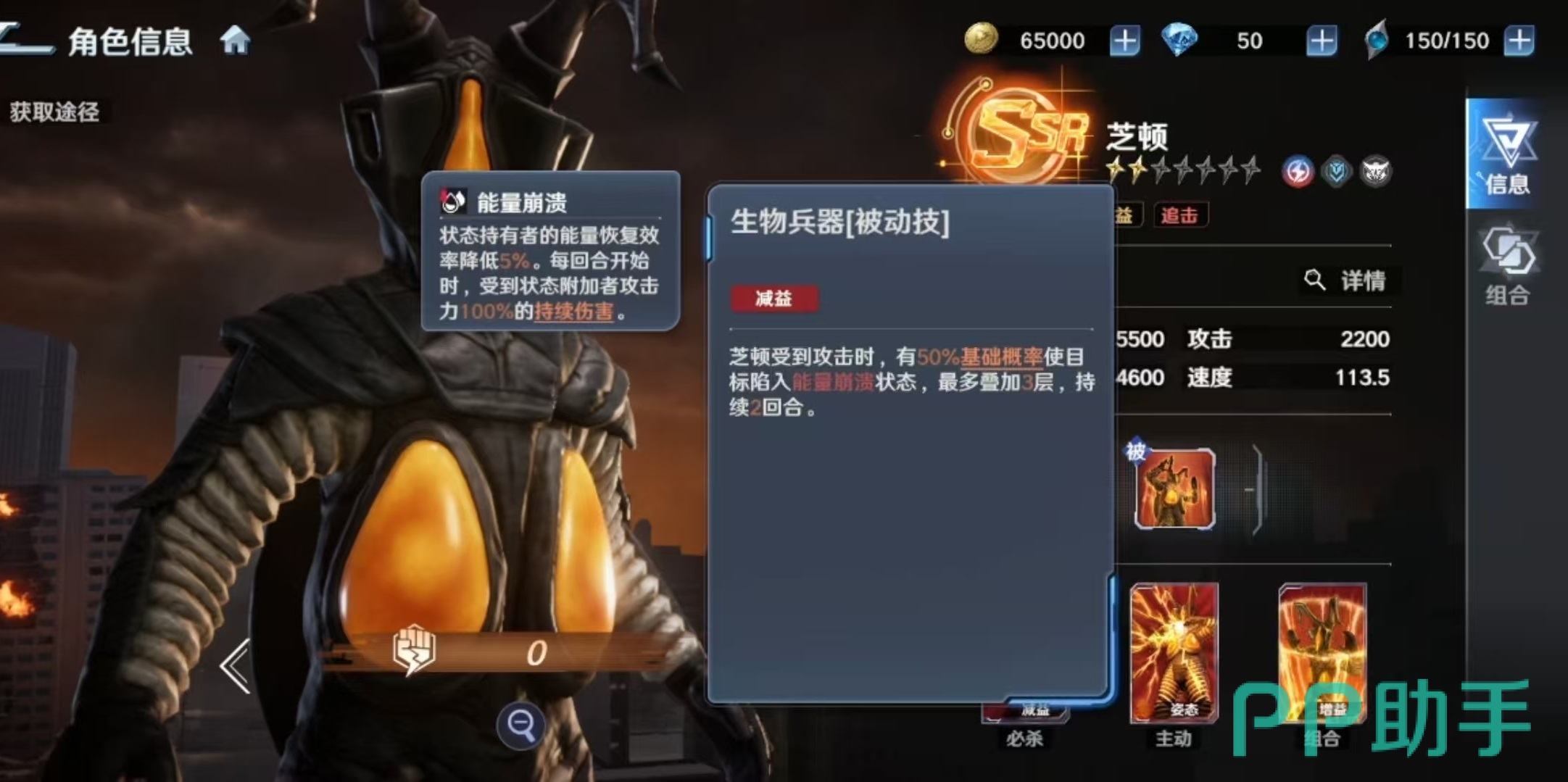 其被动技能【生物兵器】具备双重压制效果:每次受击时,有概率使目标陷入“能量崩溃”状态,该状态最多叠加至三层;每层降低目标能量恢复效率,并在每回合开始时触发一次固定数值的持续伤害。该机制并非以爆发输出见长,而是通过持续削弱敌方能量循环节奏,显著限制对手关键技能释放频率。因此,芝顿不仅是前排承伤核心,更是团队节奏掌控者。