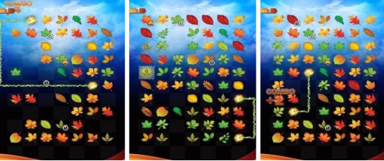 将连连看的玩法以及树叶的元素巧妙融合,开局之后玩家将会看到各种颜色的树叶,其中包括枫树叶以及杨树叶等等。在错综复杂的树叶当中,要将两个相同颜色的树叶放在一起就能快速消除,只要将每个关卡当中全部的输液消除之后就能顺利完成闯关,但是在每个关卡中都有相应的时间限制,需要在规定的时间之内完成操作。