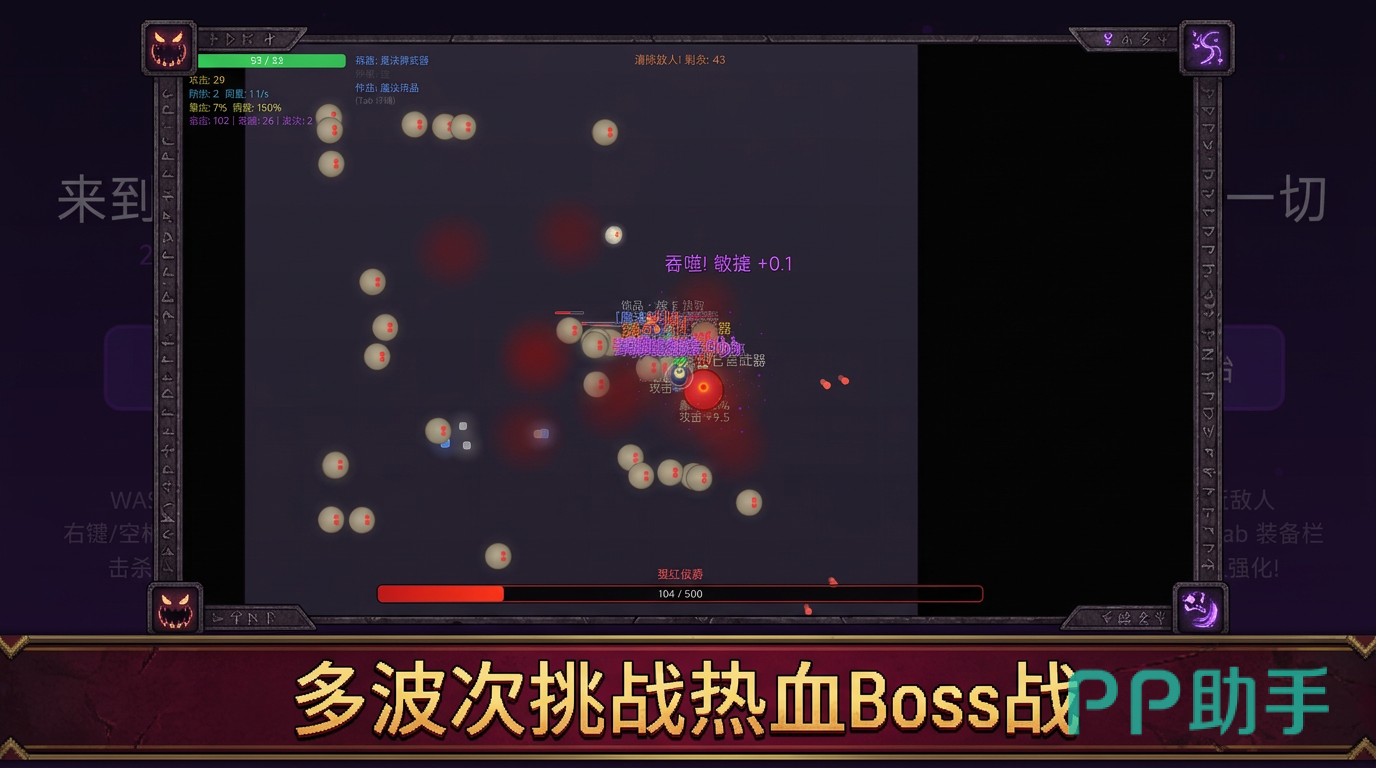 游戏内置多阶段Boss挑战体系,每位Boss均具备独立技能机制与行为逻辑。玩家需动态调整吞噬节奏、走位策略与属性侧重,方能突破极限。更关键的是,所有被吞噬的敌人,都将转化为角色本体的永久实力增幅,形成正向反馈闭环,让成长感知始终清晰可触。