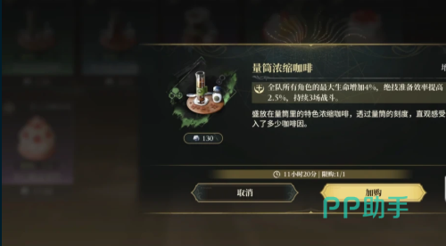 咖啡厅的核心价值体现在其战术饮品体系上。所有出品均非普通饮料,而是具备明确数值效果的功能性补给。以量筒浓缩咖啡为例:饮用后立即提升全队成员4%最大生命值,并显著加快大招充能速率。该双重增益在警局缉拿要犯等限时高压任务中,往往成为突破战局瓶颈的关键变量。