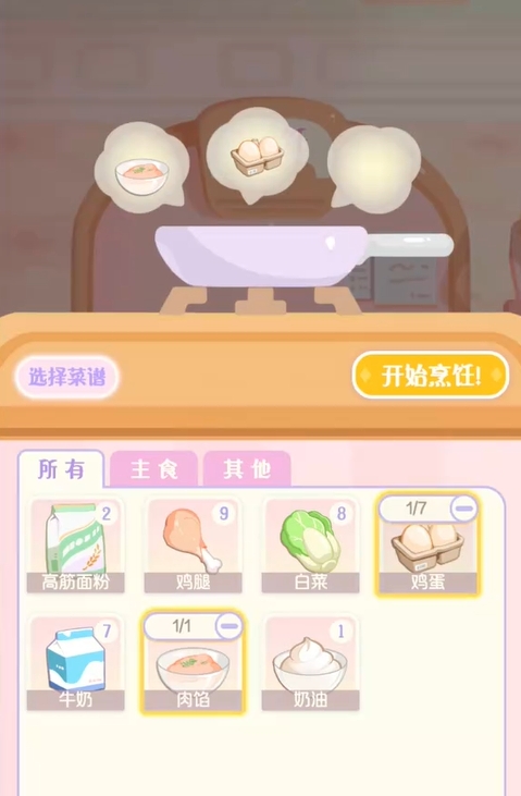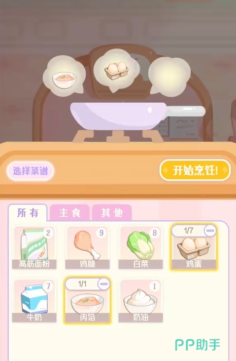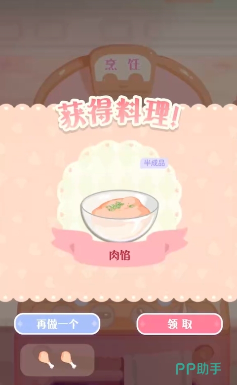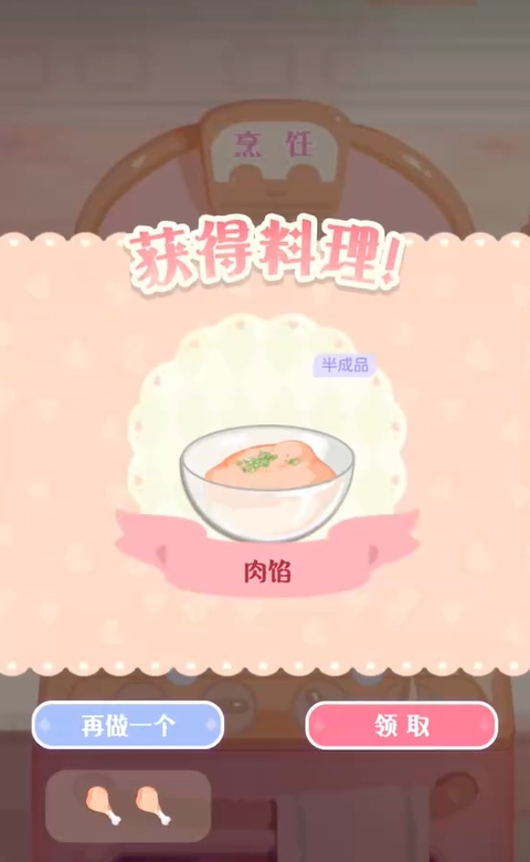 买好食材后,各位可在一个空闲的锅里放入两个单位的鸡腿,不久后它们就能得到半成品肉馅(一个单位),然后再用一个单位的肉馅和一个单位的鸡蛋进行烹饪,就能将蛋堡给制作出来了,非常的简单。
