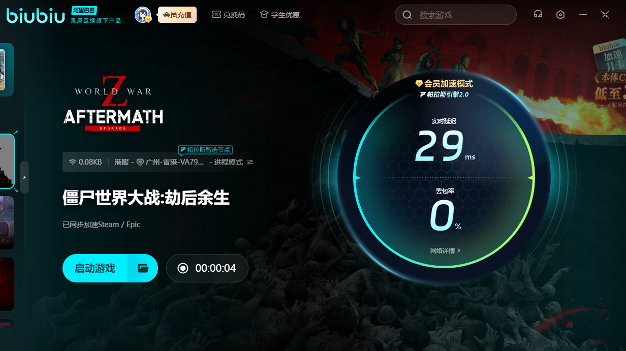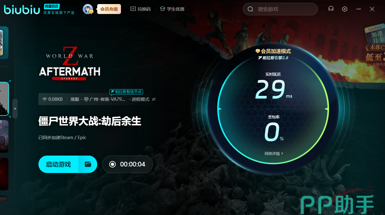 僵尸世界大战劫后余生作为玩法独特的僵尸射击大作,如今暂时没有上线国服。所以为了被邀请来到僵尸世界中解决人们,我们要用上biubiu,加速后才能成为救世主。新用户的话可领取3小时的免费加速,另外新老用户输入【biubiu不卡顿】,便可额外获得三天免费加速。若是在冰天雪地中求生时太卡,更容易被僵尸以及冷冻天气消灭。要用上加速器,才能及时躲避周遭的危险,并拥抱热烈的阳光。