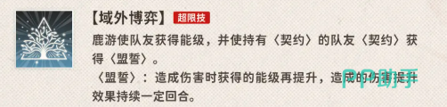 作为鹿游的超限技能,“域外博弈”无疑是她战术中的核心技能之一。使用该技能后,鹿游不仅能够提升持有“契约”队友的能级,还会赋予他们“盟誓”状态,进一步提高他们的伤害输出和能级收益。这一技能的高效性,使得鹿游在队伍中的作用不仅仅是支援,还能大幅提升整个队伍的战斗力,尤其是在面对强敌时,能发挥出决定性作用。
