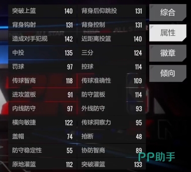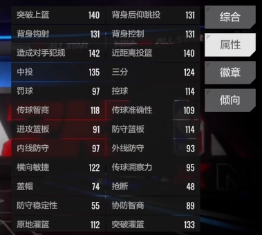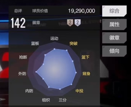 说到属性,班凯罗在进攻端的表现还可以,他的突破上篮属性高达140,在面对篮下防守时,能够凭借着出色的身体素质和技巧轻松得分,中投属性也达到了135,无论是在中距离的跳投还是在突破后的急停跳投,都有很高的命中率,三分球方面同样表现出色,124的三分属性让他在外线具备了一定的威慑力,对方不能轻易放空他的三分球。