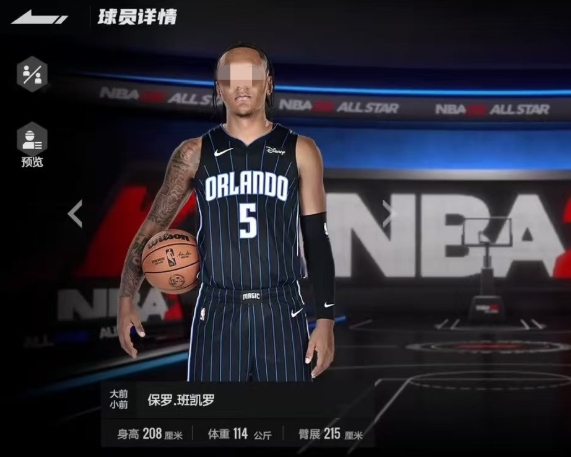 在球场上保罗班凯罗的定位主要是大前锋和小前锋,从模板来看,他拥有208厘米的身高,114公斤的体重以及215厘米的臂展,这样出色的身体条件让他在篮板争夺和内线对抗中占据优势,同时在防守时也能有效地限制对手,通过雷达图可以清晰地发现,在突破、篮下、背身以及中投这四大关键属性方面,班凯罗都有着极为出色的表现。