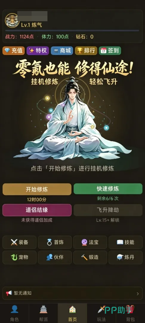 修仙体系严格遵循传统设定:炼气→筑基→金丹→元婴→化神→合体→大乘→飞升八大境界逐级突破,各阶段功法、丹药、灵兽、法宝等配套系统完整还原经典修真逻辑。老玩家可快速上手,新手亦能通过引导清晰理解成长路径。