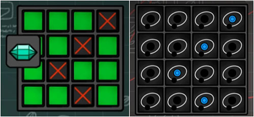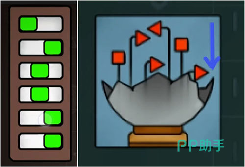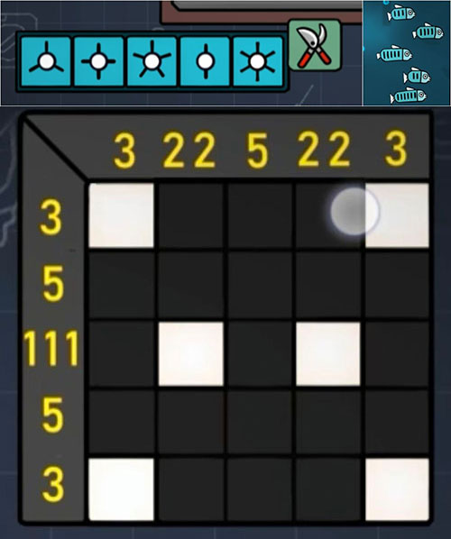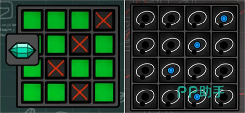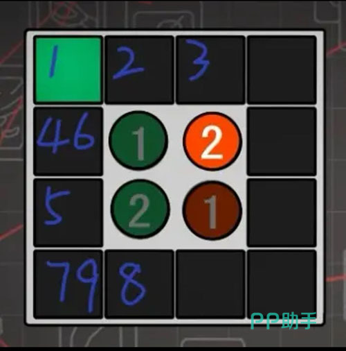 下一环节为五旋钮调节谜题,正确调整后可取得“枝条剪刀”。将初始获得的“种子”栽入对应容器,再以“枝条剪刀”修剪植株,生成“花”。随后完成涂数类逻辑挑战,获得“人物卡4”。
