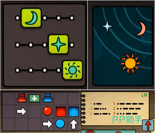 将“宝石”置入带锁匣体,开启后获取“人物卡5”。此时已集齐前五张人物卡。进入转珠类物理机制谜题,通关后获得“灯芯”。将其安装至“人3”手持电筒内;同时将“花”插入“人物卡1”所持花瓶,触发蝴蝶生成事件,获得“蝴蝶”。用“蝴蝶”喂食“人物卡2”旁的鸟,最终取得“羽毛”。