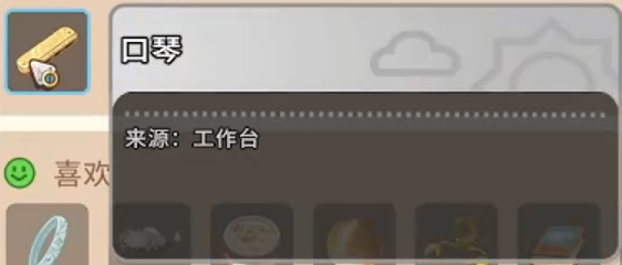 在礼物偏好方面,素馨对常规消耗品接受度较低,更倾向具有文化属性或工艺价值的物品。经实测验证,“口琴”是当前版本中性价比最优的选择:需中级工作台解锁制作,消耗1块木板与1张皮革,单次赠送可提升12点好感度。该配方获取门槛低、材料易得,尤其适合资源尚不宽裕的前中期阶段,是建立稳定关系的首选方案。