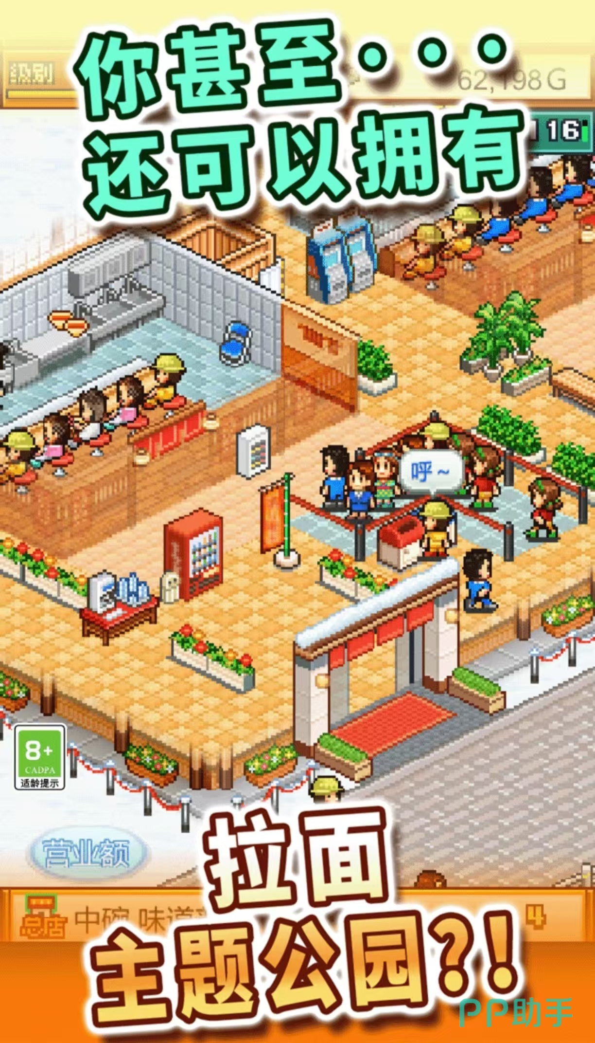 《开罗拉面店》玩家来到一个繁华的城市中,找一个合适的地点去开设一家拉面馆,拉面馆不仅要满足顾客的口味,也要面临很多的竞争对手。需要自己制作拉面的配料和汤料,根据每个人的喜好来选择,游戏里面还设置了拉面大赛,可以去展示自己的拉面技巧,不断的发展新的菜品。宣传拉面店,赚取足够的收益后可以为店面进行升级,提高店员的技能来招揽更多的客人。