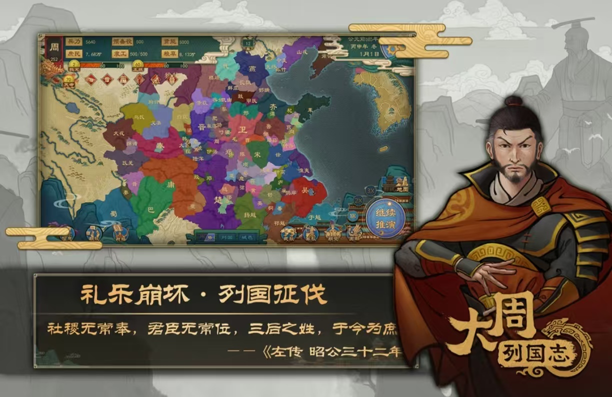《大周列国志》作为一方诸侯可以在游戏中建立城池,有很多景色都和历史非常的还原,可以体验到百家争鸣的剧情。游戏里面经历了很多的时代,每个朝代下都有不同的经营规模,在开局玩家只有0个兵力,需要从头开始发展士兵,进行农田耕种,不断的去打仗扩大势力。还可以参加朝廷上的很多事,游戏中有许多的人物和职业,可以对古代的历史有很深刻的了解。